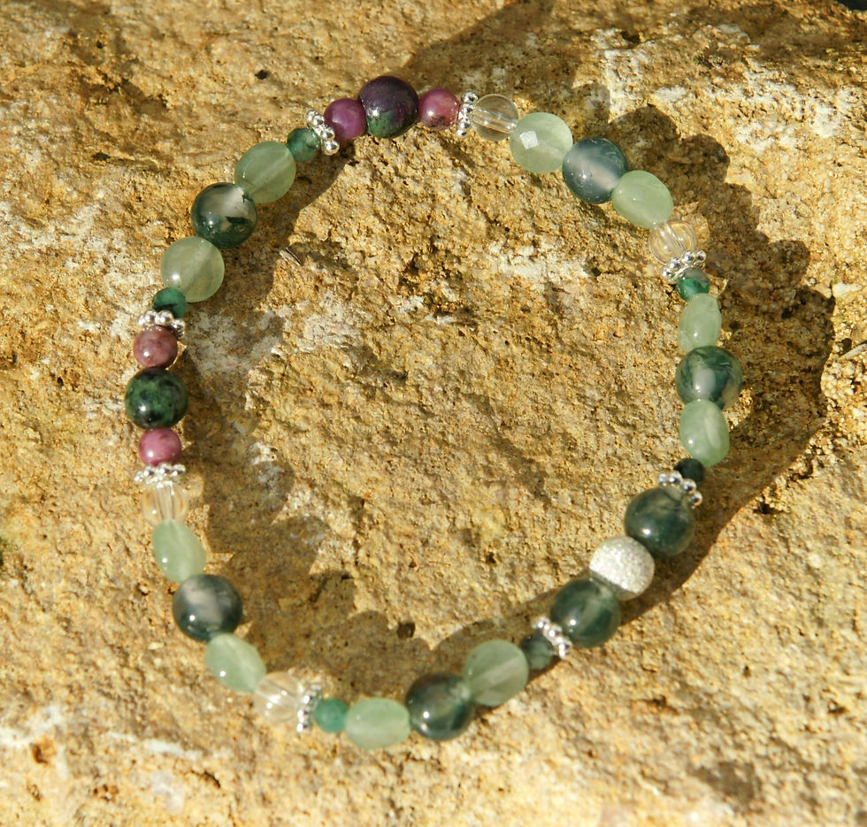 Armkette Moosachat Aventurin Smaragd Rubin Zoisit mit Rubin Bergkristall